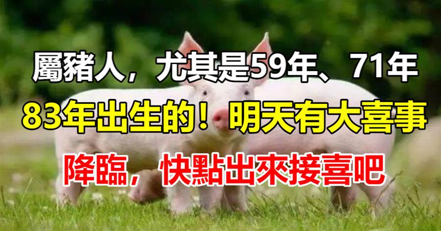 屬豬人,尤其是59年、71年、83年出生的!明天有大喜事降臨,快點出來接喜吧